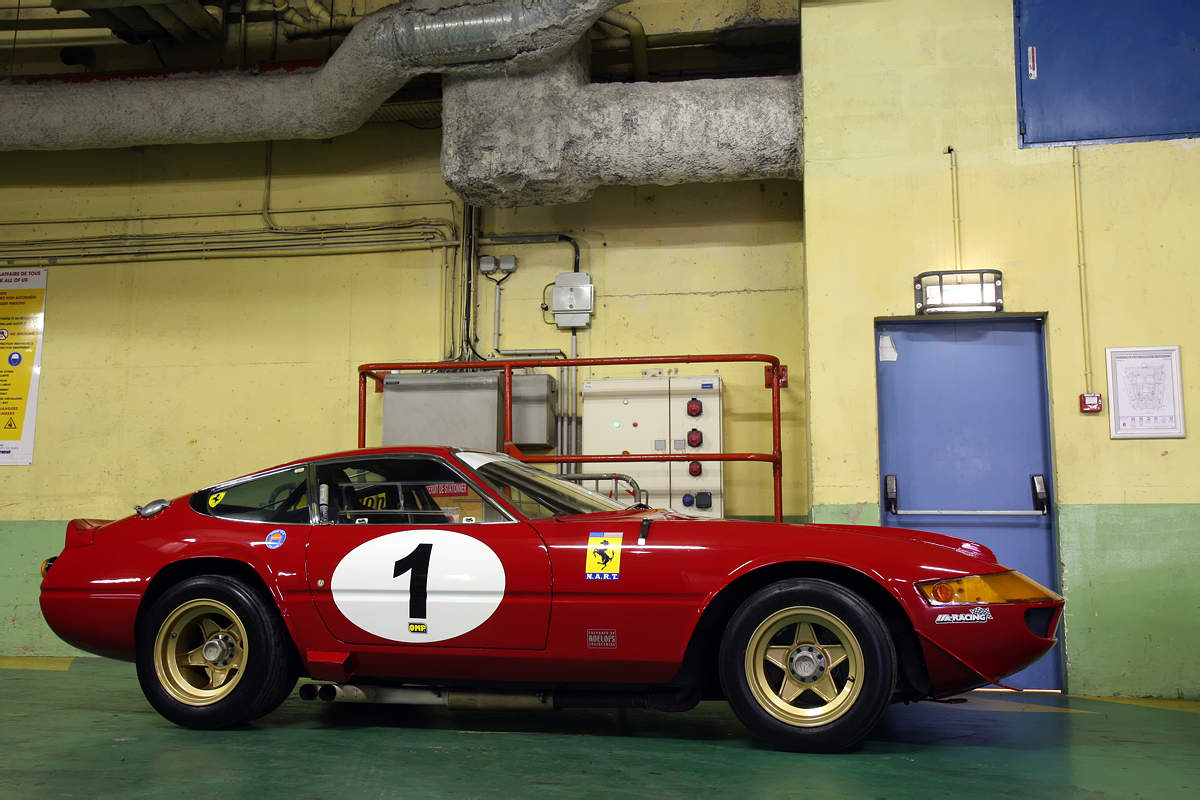 Den neste bilen kan det nok diskuteres om er rå nok til å kvalifisere for klassen, men siden den er en av mine absolutte favoritter uansett bilmerke, tar vi den med: Ferrari 365 GTB4. I raceversjon er dette bare… ja, jeg er målløs: