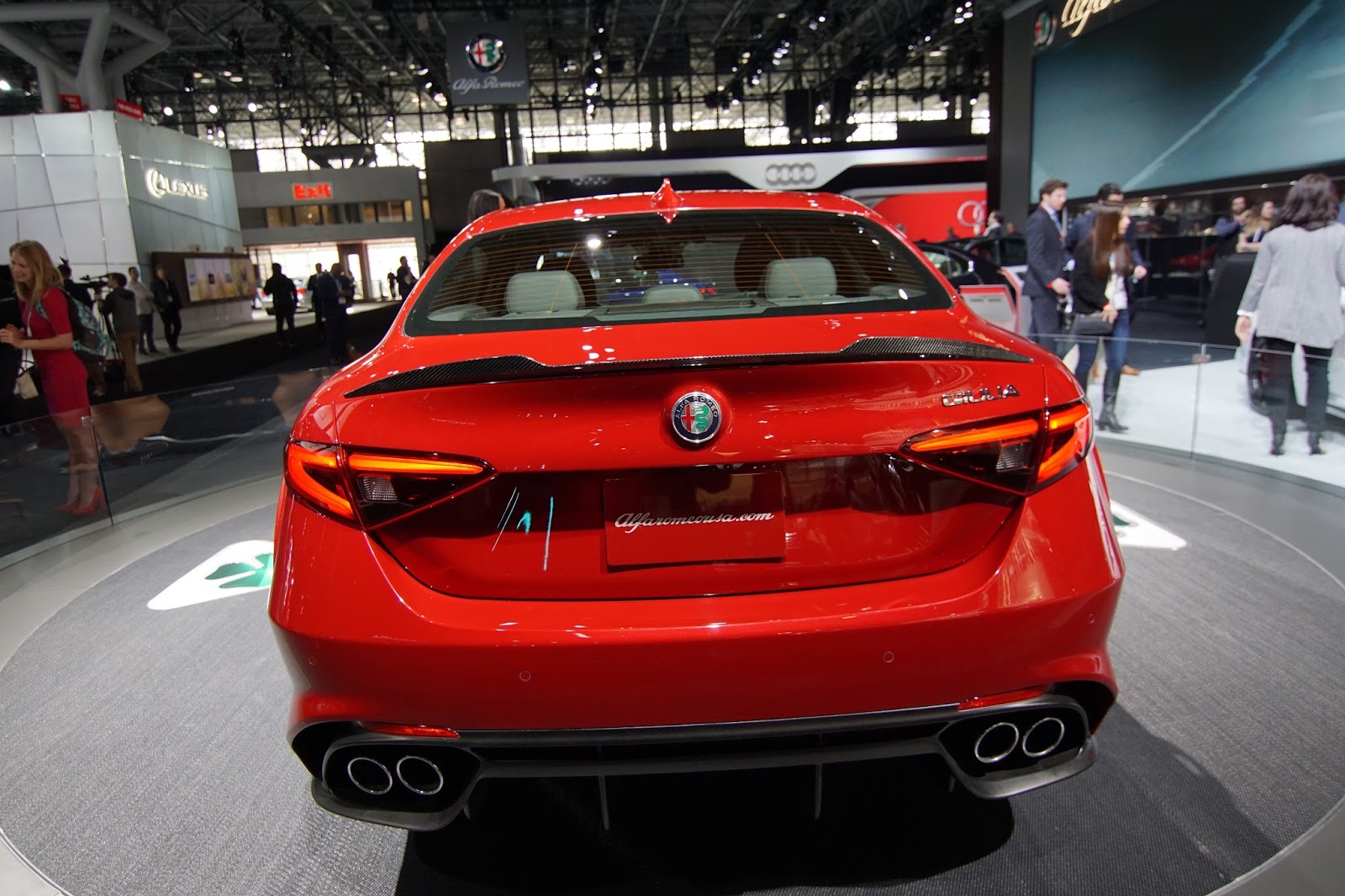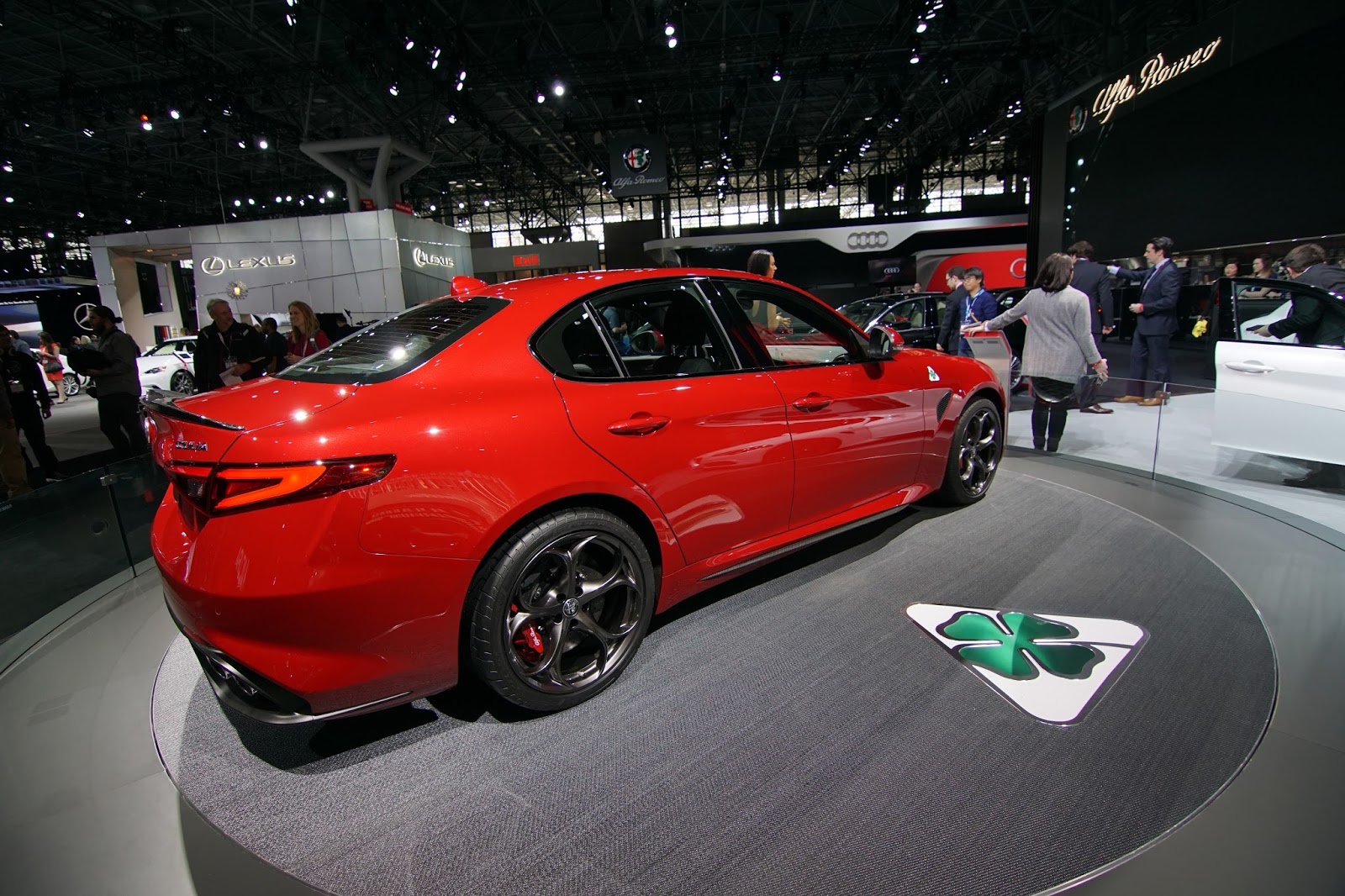 I juni i fjor viste Alfa litt av Giulia da de såvidt dro teppet av Quadrifoglio-versjonen med 510 hestekrefter. Så ble det stille igjen, men i Genéve viste de endelig de vanlige produksjonsklare modellene for publikum.