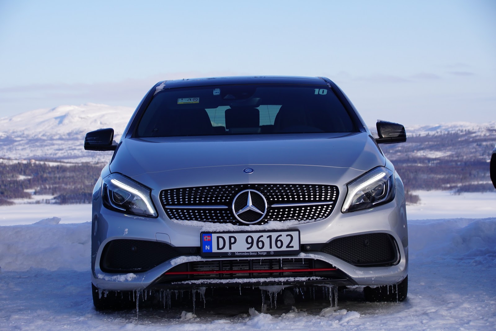 De snølagte bakkesidene opp langs sidene av Tisleifjorden er ikke steder du vanligvis tenker oi, her hadde det vært kult å kjøre bil. Men skulle du gjøre det, bør du antakelig sitte i en GLE med Offroad-pakke. Den hadde i alle fall minimale problemer med å forsere temmelig heftige bakker og ulendt terreng i snø.