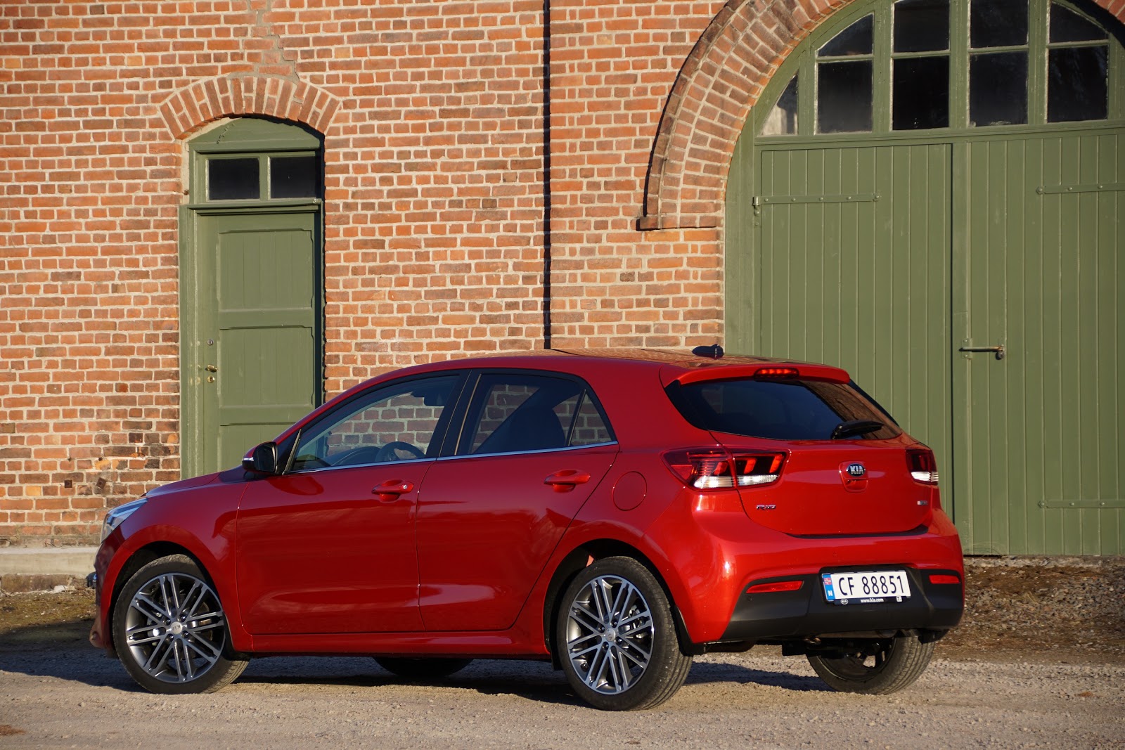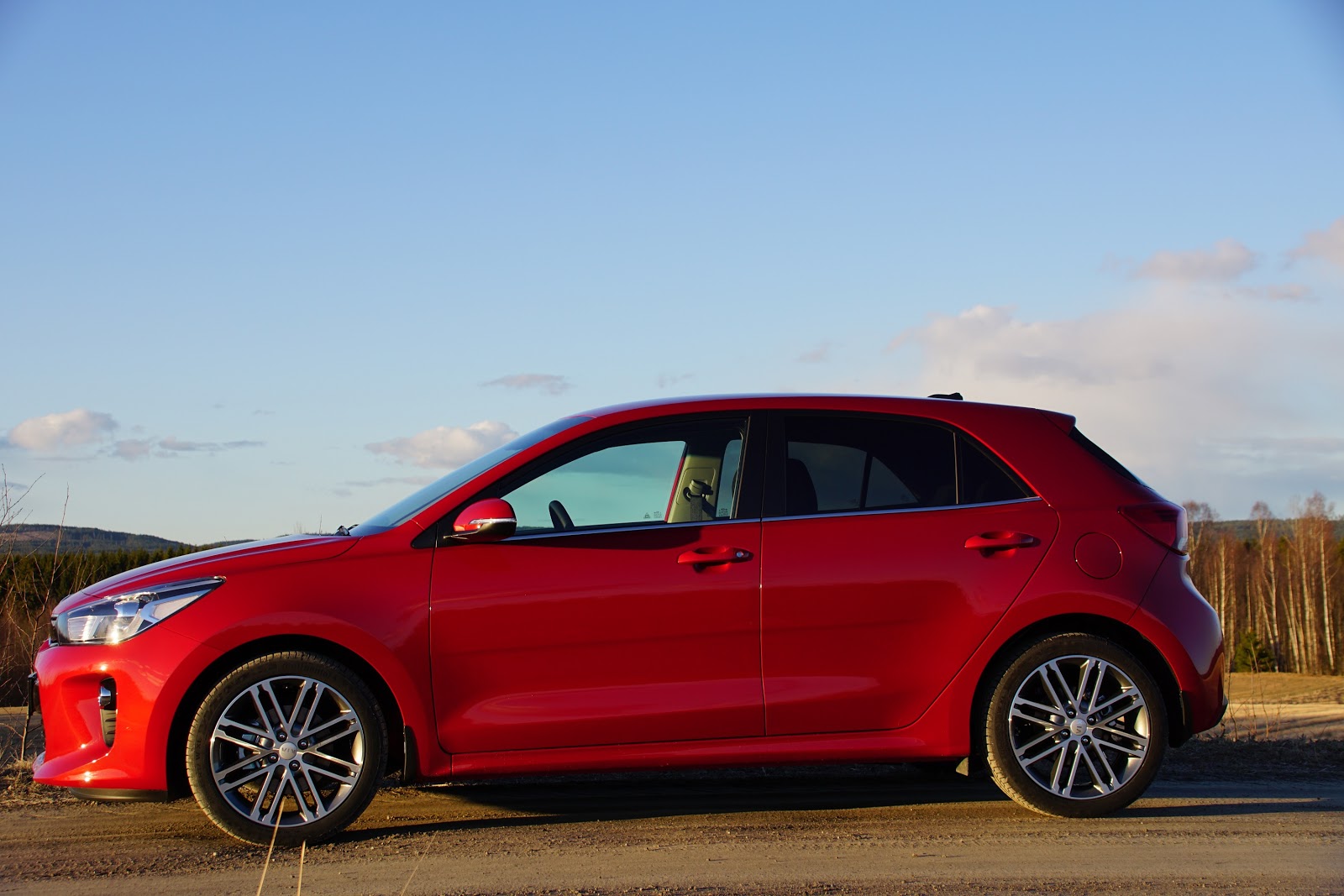 Høy vinduslinje langs sidene gjør bilen litt mer muskuløs, og rødfargen på testbilen passer utmerket i kombinasjon med de sorte detaljene og mørke vinduene. Felgene er fine de også.