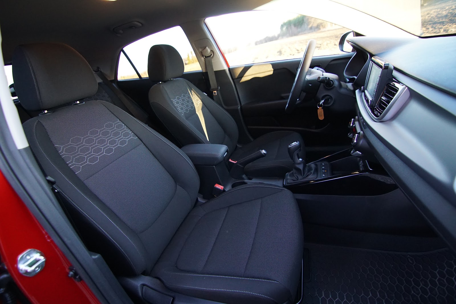 Setene i seg selv er helt fine – jeg har ikke spesielle klagepunkter. Et under av komfort er de selvfølgelig ikke, og ikke er sidestøtten spesiell, men de er gode å sitte i, også over tid. En viktig ting ved dem, er at selv om de ikke er voldsomt store, belaster de ikke utsiden av lårene for mye sånn det er i mange andre mindre biler.