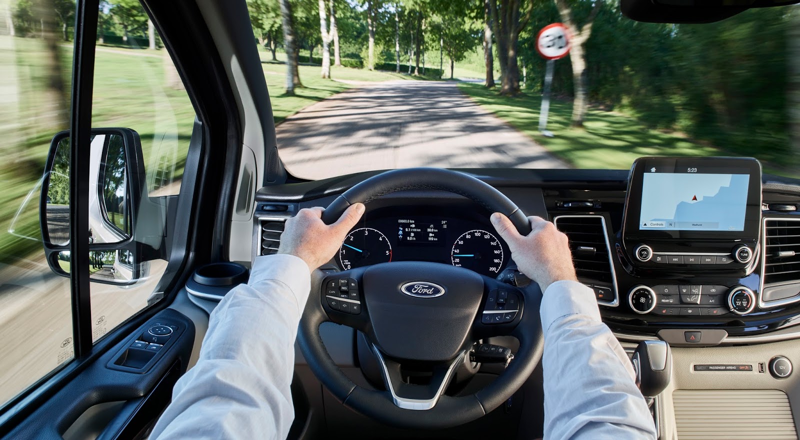 Støyreduksjonen er også betydelig forbedret, noe som særlig kommer passasjerer på 2. og 3. seterad tilgode. Tourneo Custom har også et forbedret klimaanlegg, som nå skal gi god effekt i hele bilen. 6 USB-porter og 10 høyttalere topper det hele.