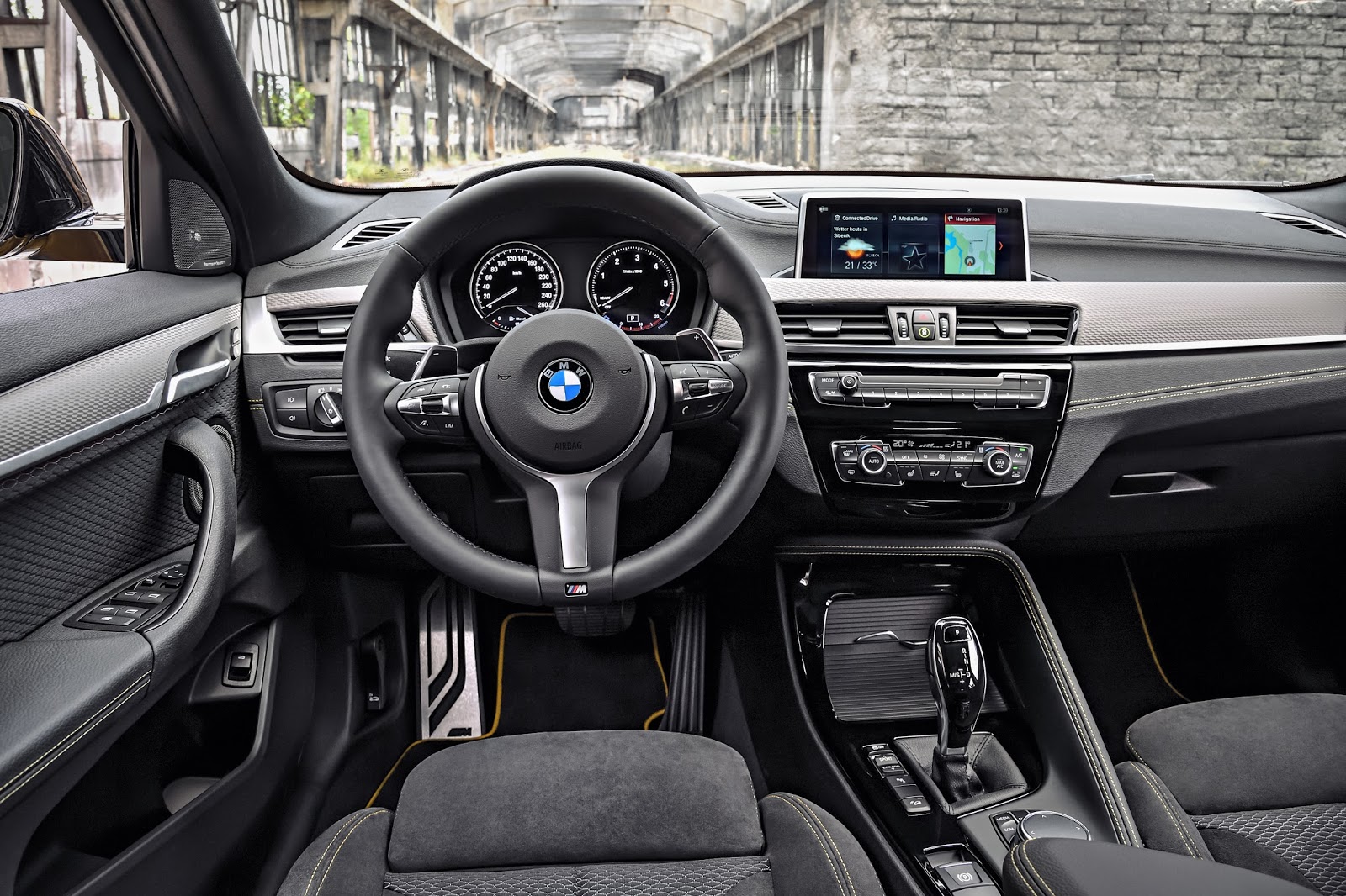 BMW X2 kommer med 3 nye fargealternativer. Galvanic Gold og Sunset Orange stikker seg ut som modige farger, mens Misano Blue er mer klassisk. Innvendig er kontrastsømmer i dashbordet standard.
