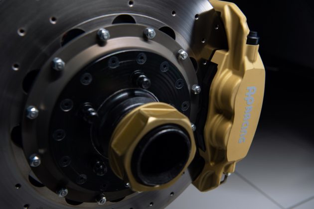 4-stemplede kalipere og 362 mm skiver fra AP Racing, uten ABS og uten bremsekraftforsterker, understreker både det heftige, og det analoge.